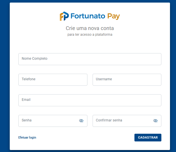 Cadastre-se na Fortunato Pay e mude o rumo do seu negócio digital.